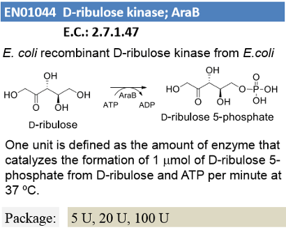 One unit is defined as the amount of enzyme that catalyzes the formation of 1 μmol D-ribulose 5- phosphate from D-ribulose and ATP per minute at 37 °C.